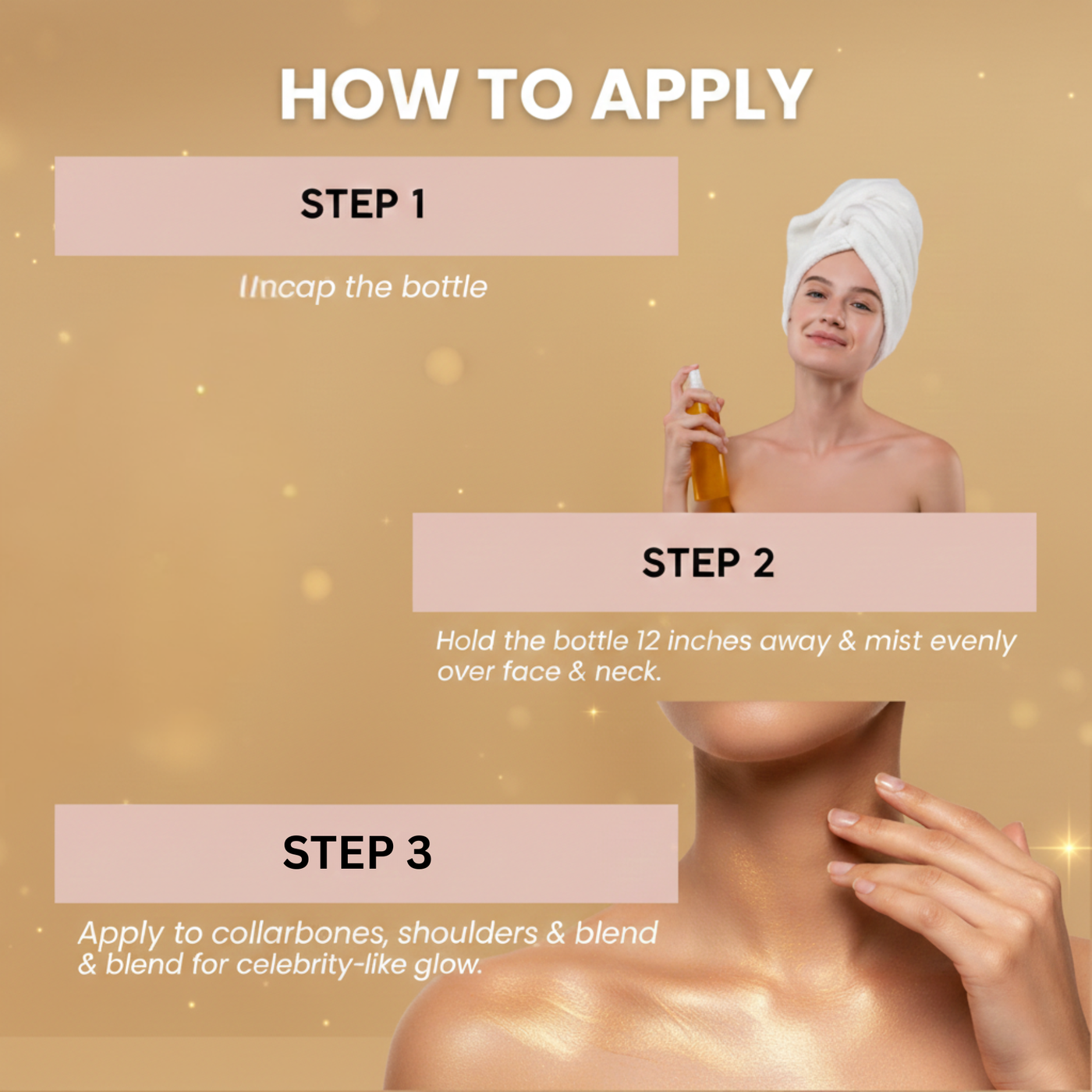 Mix with foundation or lotion for an all-over radiant finish.