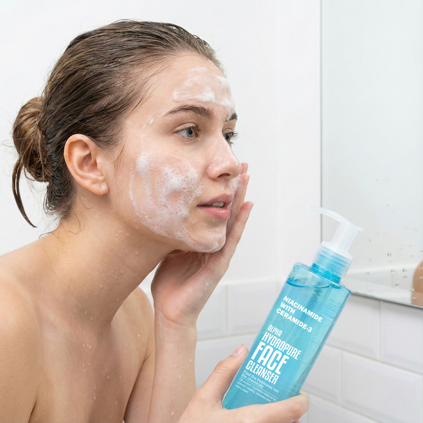 Unlike harsh face washes that leave your skin feeling dry and tight, Alpha Hydropure delivers a refreshing cleanse that maintains hydration balance. Niacinamide helps refine pores, control excess sebum, and improve overall skin texture, making your complexion appear smoother and more even-toned over time. Ceramide-3 strengthens the skin barrier, locking in moisture and shielding skin from environmental stressors.