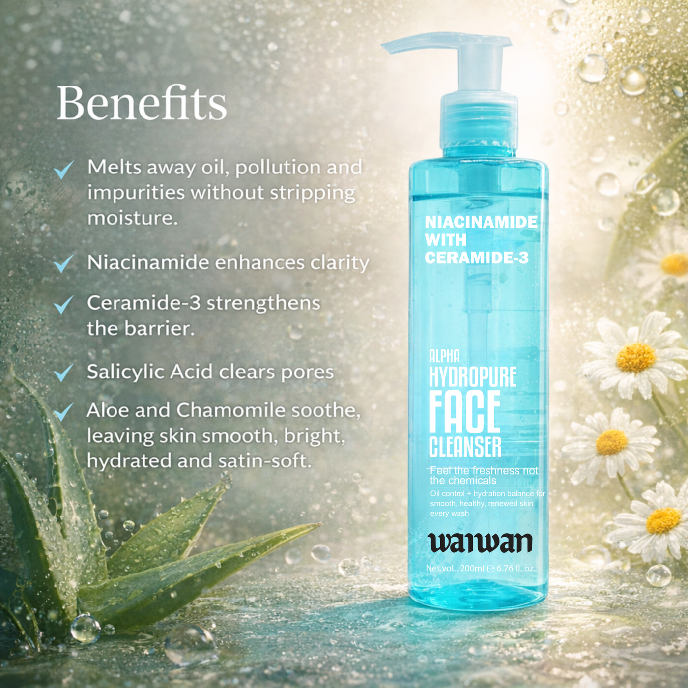 With every use, your skin feels fresh, soft, and renewed — never over-cleansed. Whether you’re starting your morning routine or removing the day’s buildup at night, Wanwan Alpha Hydropure Face Cleanser ensures your face stays clean, balanced, and healthy-looking.